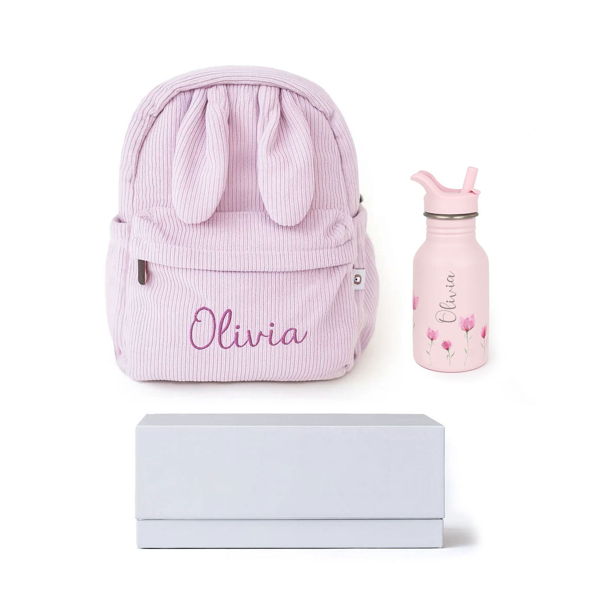 - Corduroy Hasen-Rucksack mit eingesticktem Namen des Kindes