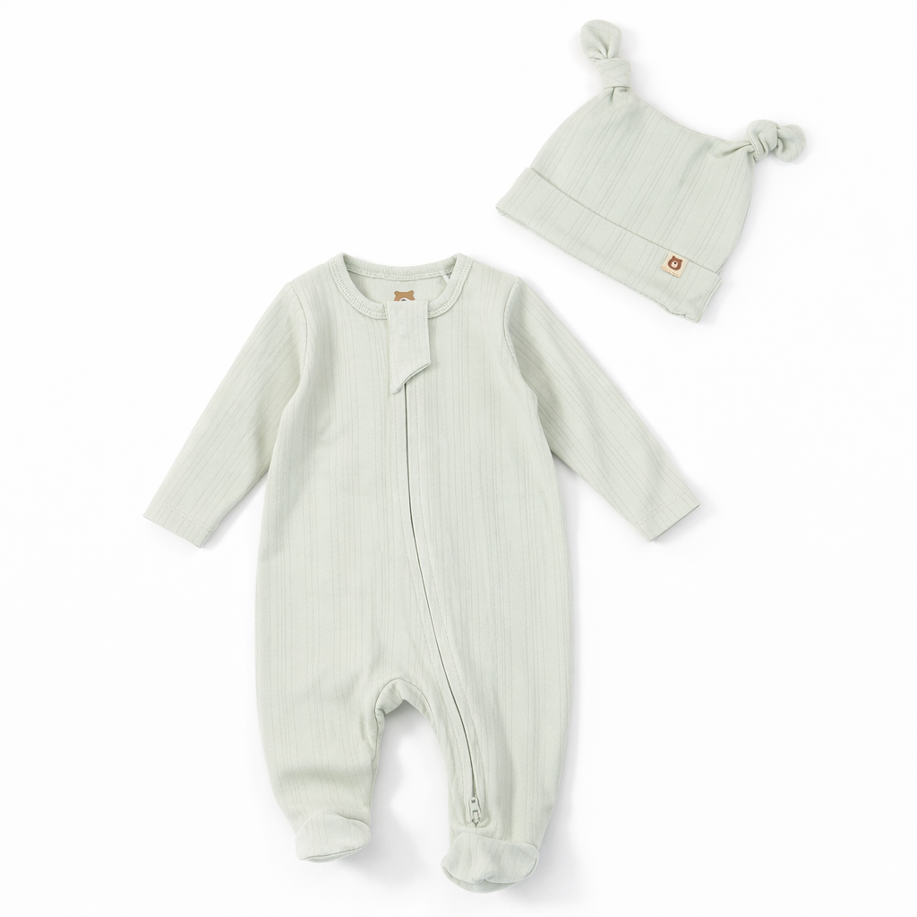 Abgeschlossen mit umklappbaren Kratzfäustlingen für zusätzlichen Komfort in den ersten Monaten.