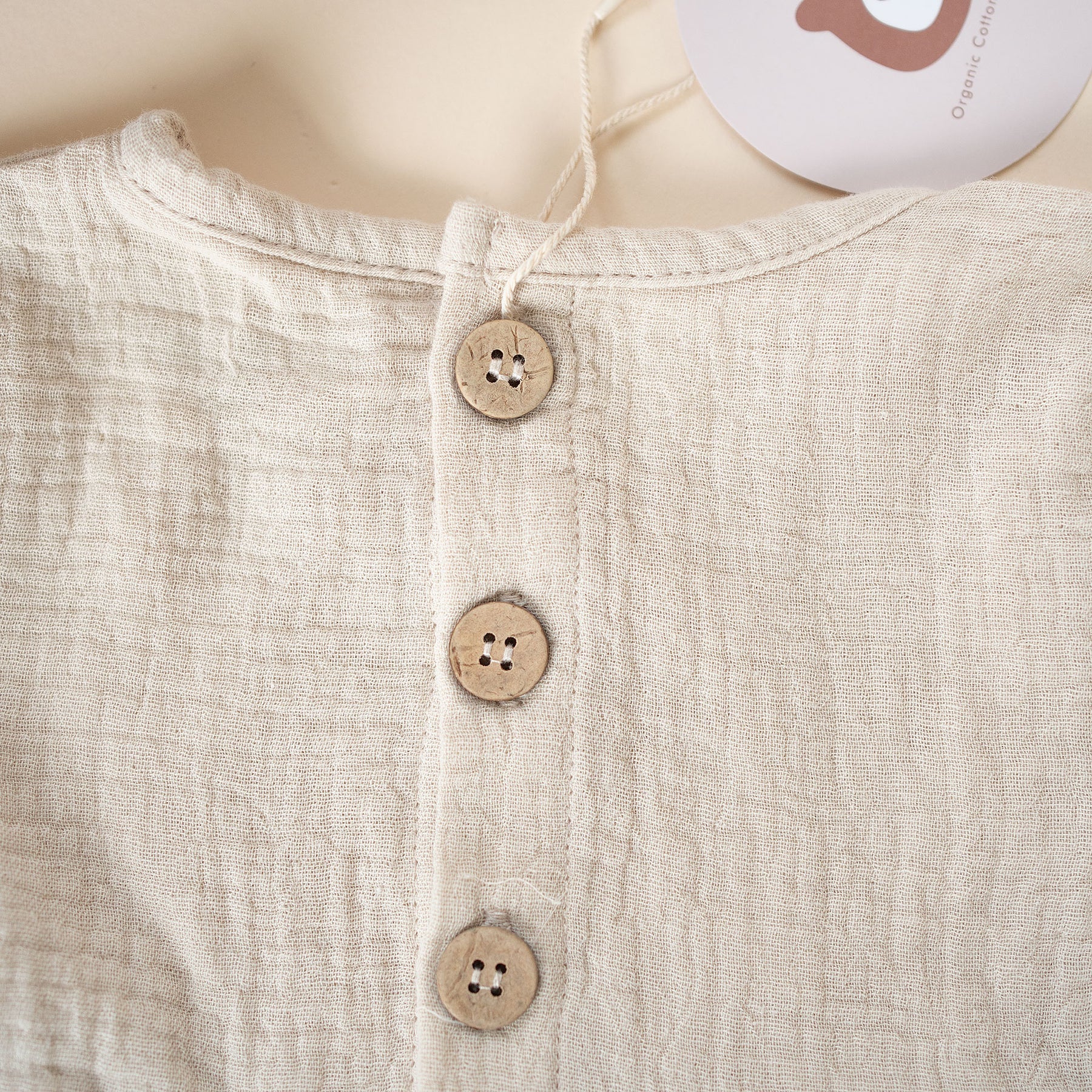 • Biologisch katoenen mousseline babyjurk met bijpassende strik