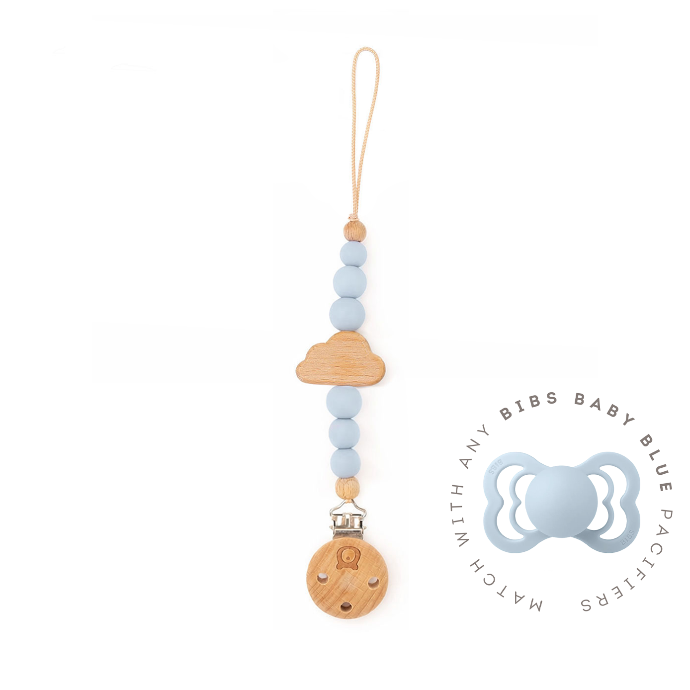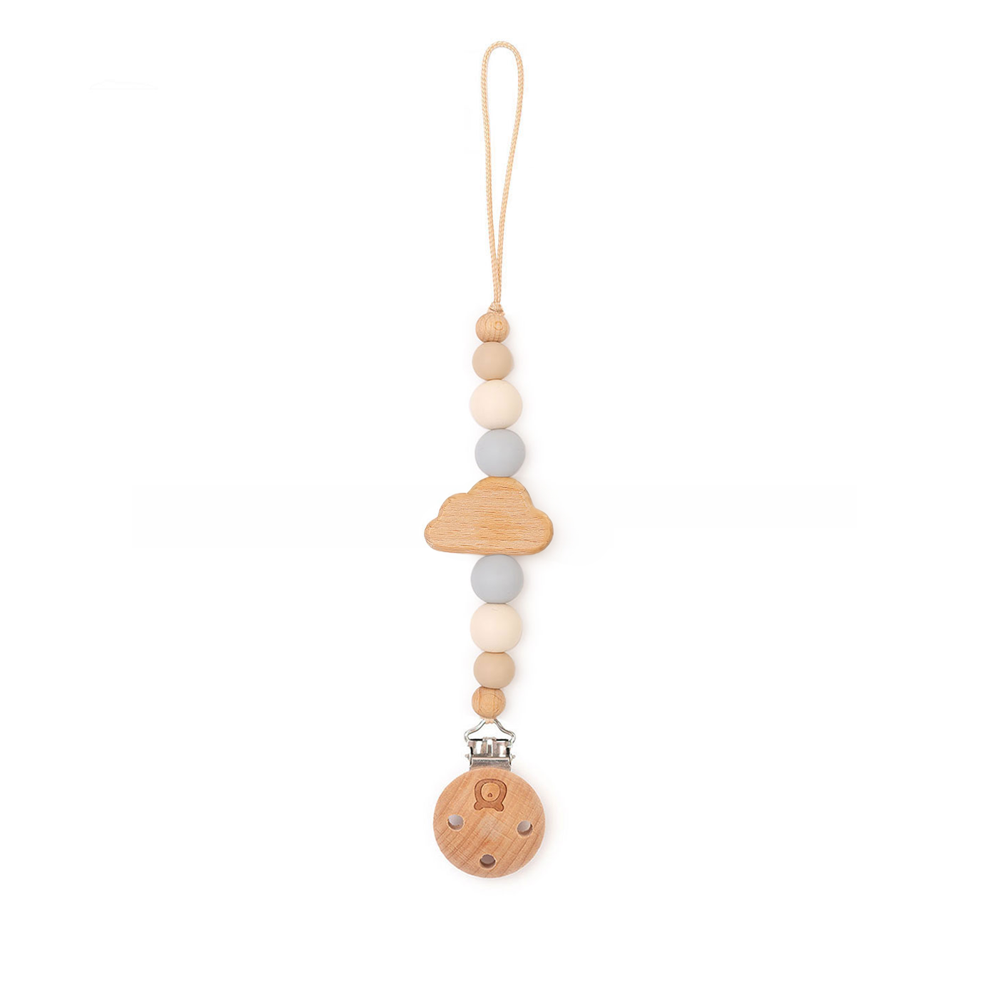 Pacifier clip Handmade in the Netherlands using silicone beads and wooden bead in a Cloud shape.