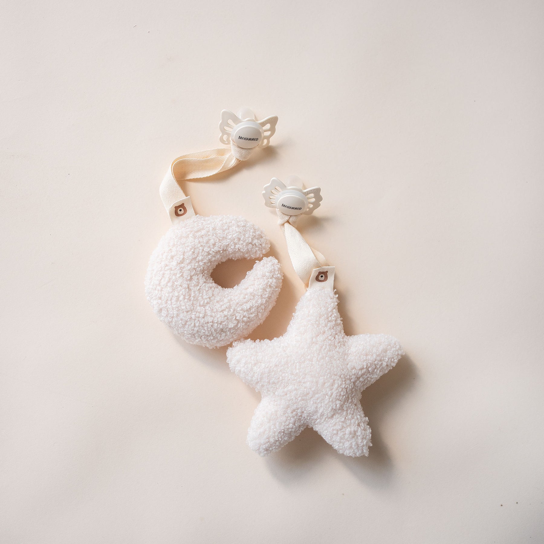 Made from soft teddy fabric, our plush pacifier holder is designed to be both a comforting companion and a practical everyday essential. The cuddly texture soothes little hands while helping babies feel calm and secure.