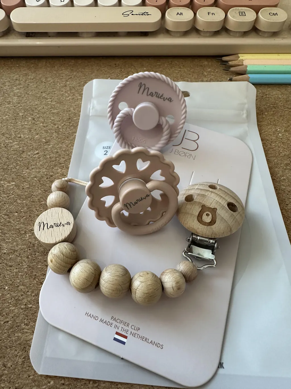 Pacifier clip Handmade in the Netherlands using wooden bead.
