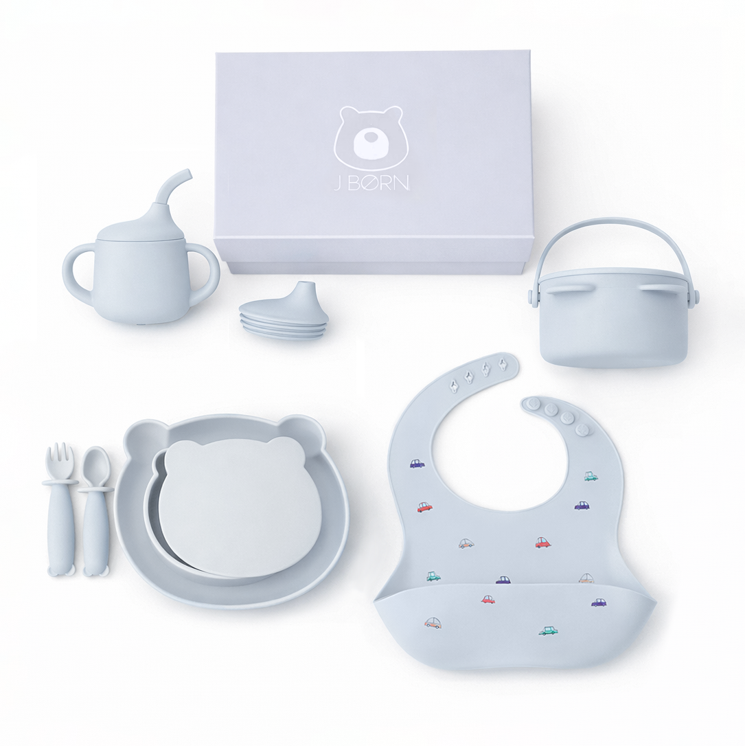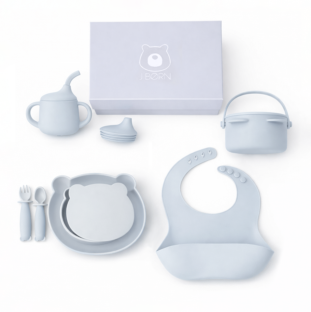 JBØRN Baby Weaning Mealtime Set är genomtänkt designat för att göra ditt barns övergång till fast föda till en lek! Tillverkad i bedårande björnformer och klädda i handmålade mönster, är vårt matningsset ett sött tillskott till ditt barns måltid. Alla produkter i avvänjningspresentsetet är gjorda av premium silikon av livsmedelskvalitet som uppfyller rigorösa LFGB-teststandarder för ditt barns säkerhet.